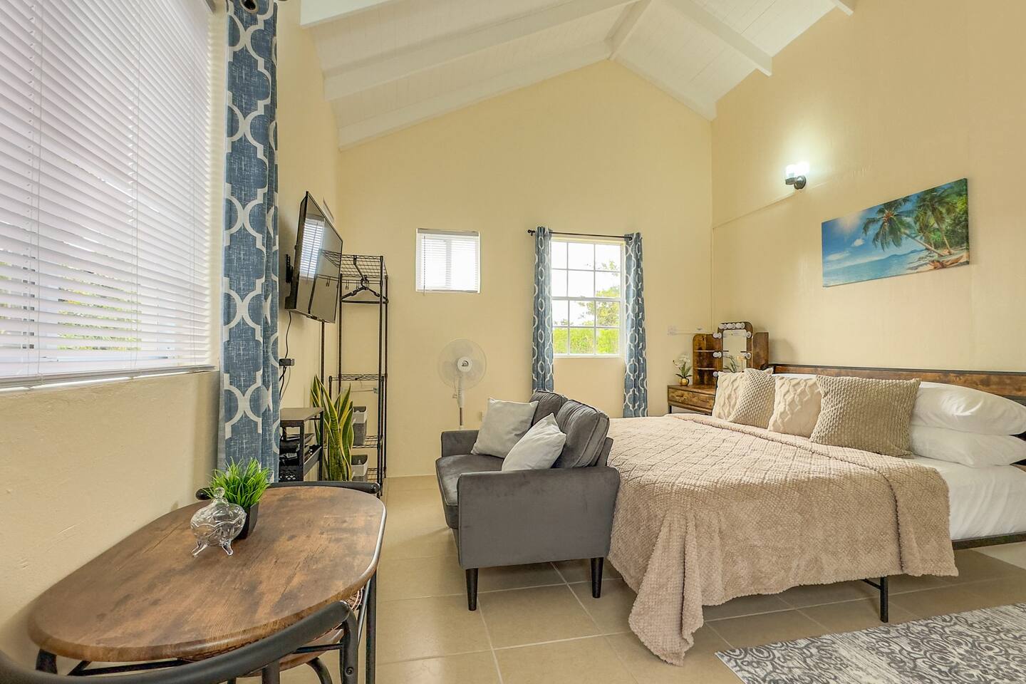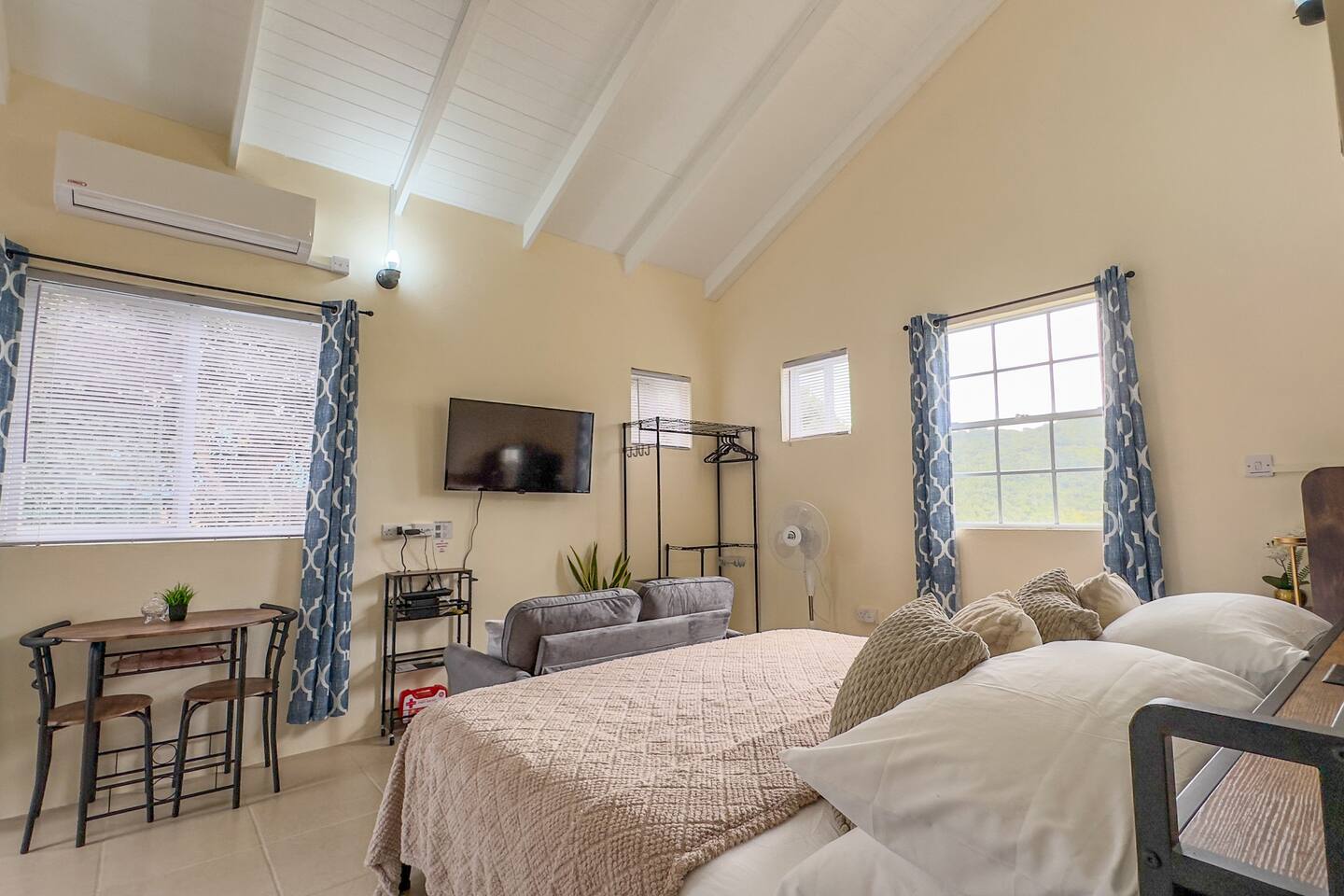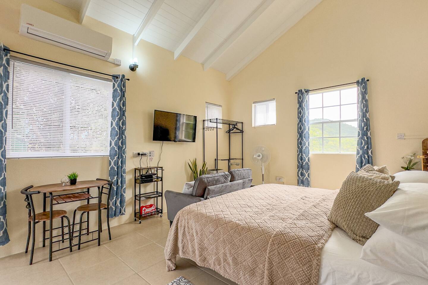 Country Rest is a bright, open-plan studio nestled in the peaceful countryside of Grace, Vieux-Fort. You’ll find everything you need for a comfortable stay—from a fully-equipped kitchenette and high-speed Wi-Fi workspace to plush linens, air conditioning, and a charming balcony overlooking lush greenery. Self check-in and gated parking make your arrival seamless, while thoughtful touches like a coffee station and ceiling fan ensure an effortless, home-away-from-home experience. Whether you’re here to work remotely, explore nearby beaches and local eateries, or simply recharge in a tranquil setting, Country Rest delivers convenience and calm in equal measure.