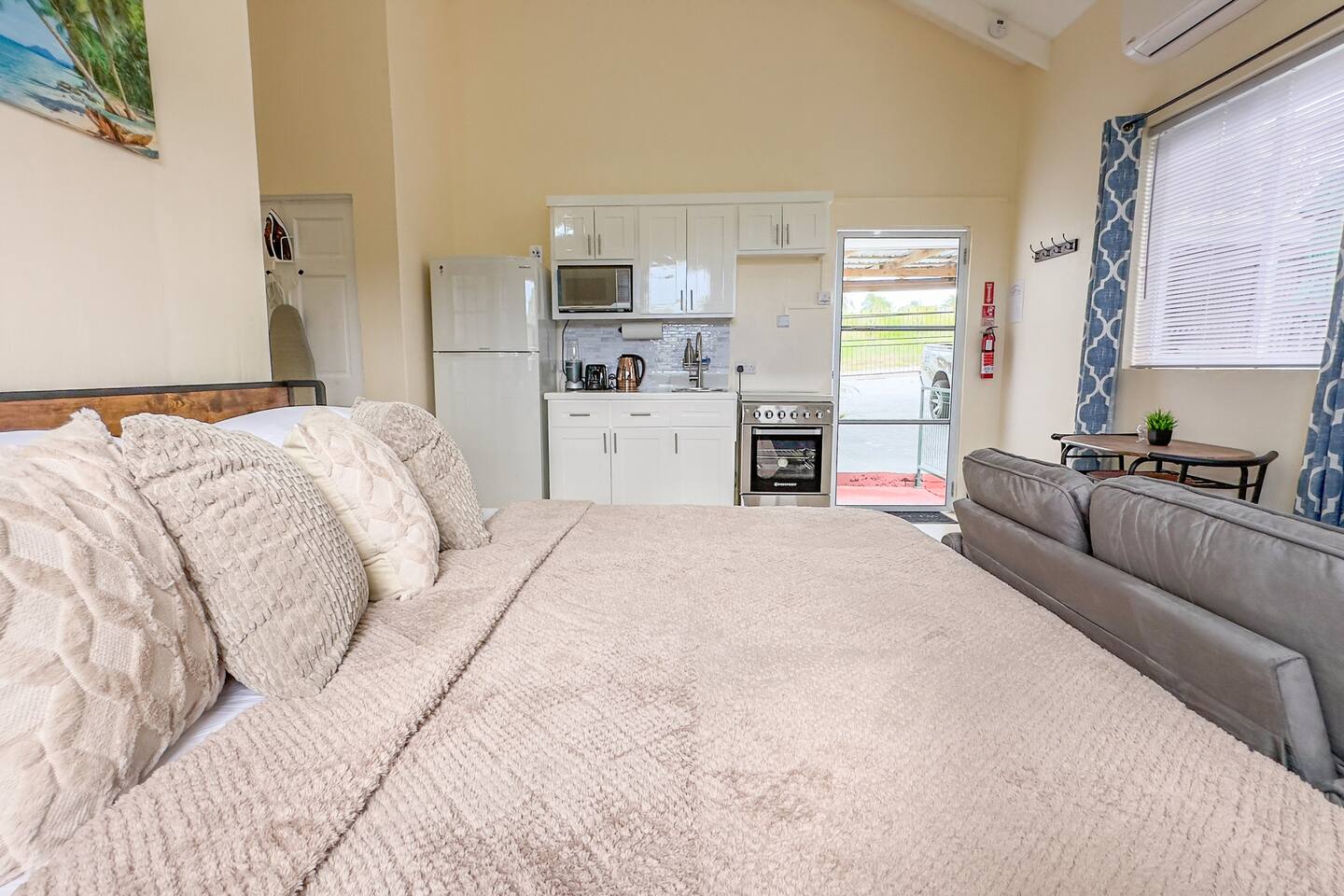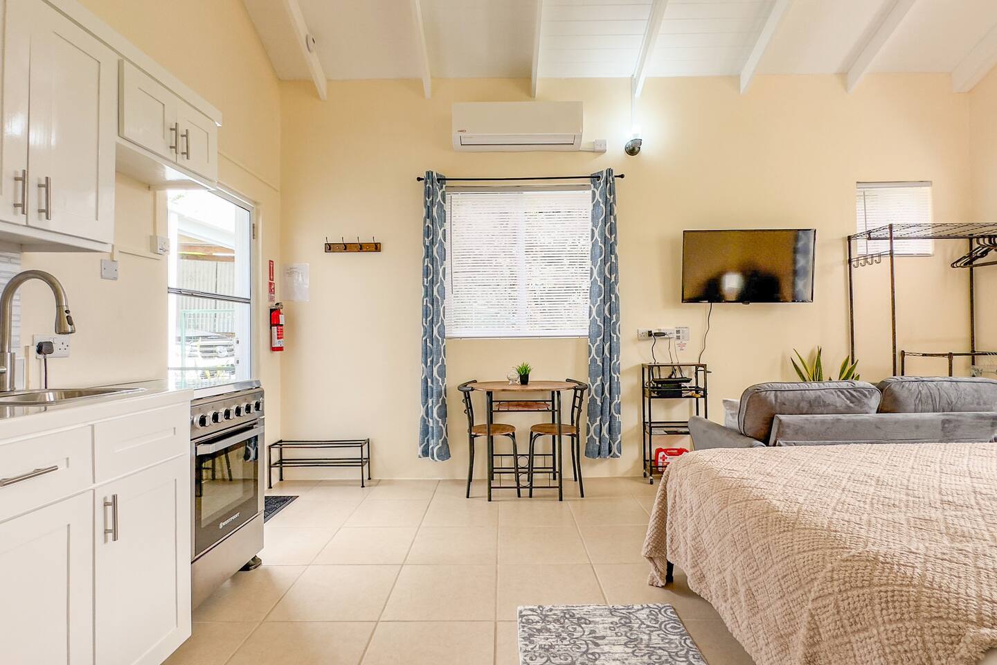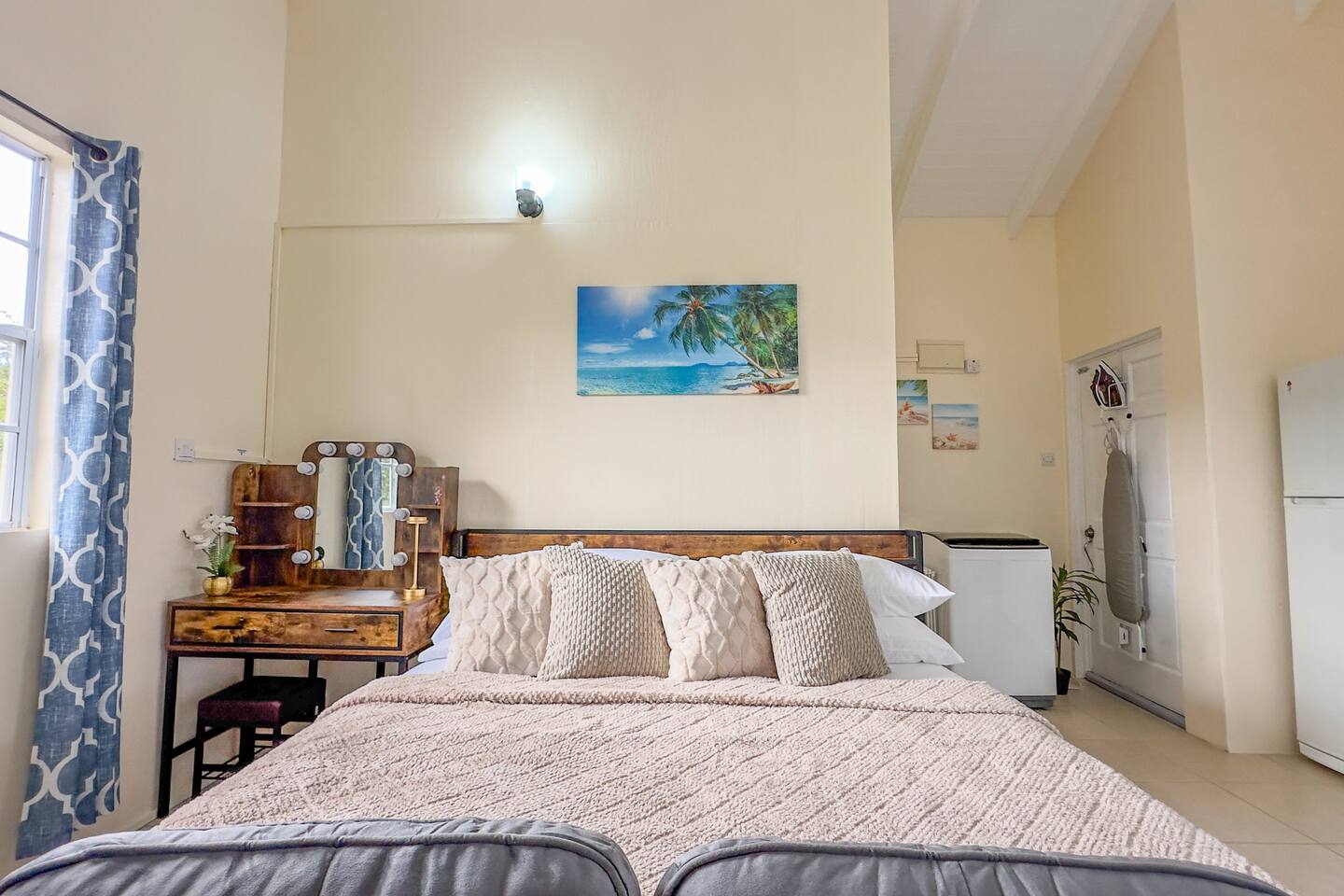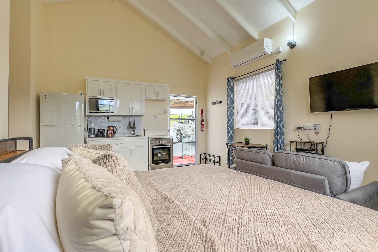 Country Rest is a bright, open-plan studio nestled in the peaceful countryside of Grace, Vieux-Fort. You’ll find everything you need for a comfortable stay—from a fully-equipped kitchenette and high-speed Wi-Fi workspace to plush linens, air conditioning, and a charming balcony overlooking lush greenery. Self check-in and gated parking make your arrival seamless, while thoughtful touches like a coffee station and ceiling fan ensure an effortless, home-away-from-home experience. Whether you’re here to work remotely, explore nearby beaches and local eateries, or simply recharge in a tranquil setting, Country Rest delivers convenience and calm in equal measure.