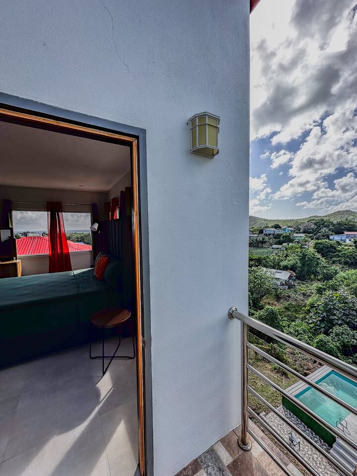 Wake up to sweeping ocean views and unwind on your private balcony in a spacious, stylish suite. ✔ Ensuite bathroom + fast Wi-Fi + Kitchenette + Balcony ✔ Shared pool access ✔ 12 min from UVF airport ✔ $25 airport transfer + car rental from $65/day ✔ 5 min to supermarket, 8 min to Vieux Fort Perfect for couples, vacationers & business travelers. Enjoy comfort, convenience & tropical charm—all in one relaxing space.