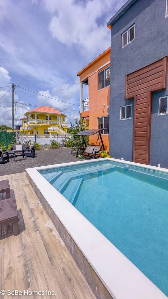 Welcome to Obey’s Sanctuary, your peaceful Caribbean escape just minutes from Saint Lucia’s southern coast and International Airport. Hidden within a secure, tropical enclave, this modern retreat blends sleek design with authentic island warmth, perfect for couples, families, and small groups seeking relaxation and convenience. Step through the gates and feel the calm settle in. Four private 2-bedroom suites sit around a sparkling shared pool and jacuzzi, framed by lush greenery and tropical flowers. Each suite is thoughtfully designed for comfort and independence, featuring open-concept ensuite baths, full kitchens, and airy living spaces that make you feel at home from the moment you arrive. Enjoy your mornings on a private balcony with a cup of local coffee, spend your afternoons lounging poolside under the Saint Lucian sun, and unwind in the evening breeze as the property glows under warm lighting. At Obey’s Sanctuary, you’ll experience the perfect balance of peace and accessibility only 10 minutes from Hewanorra International Airport, supermarkets, dining, and some of the island’s best beaches. Whether you’re here to work remotely, reconnect with loved ones, or simply rest, this property offers everything you need for a seamless stay. ★ 4 Stylish 2-Bedroom Suites with Full Kitchens & Ensuite Baths ★ Shared Pool with Jacuzzi & Lounge Seating ★ Wi-Fi, Air Conditioning & Dedicated Workspace ★ Secure Gated Parking & Keyless Entry ★ Concierge Assistance for Tours & Local Experiences ★ 10-Min Drive to Beaches, Restaurants & Airport From sunrise dips in the pool to quiet nights under the stars, Obey’s Sanctuary invites you to slow down, breathe deeply, and savor Saint Lucia at your own rhythm.